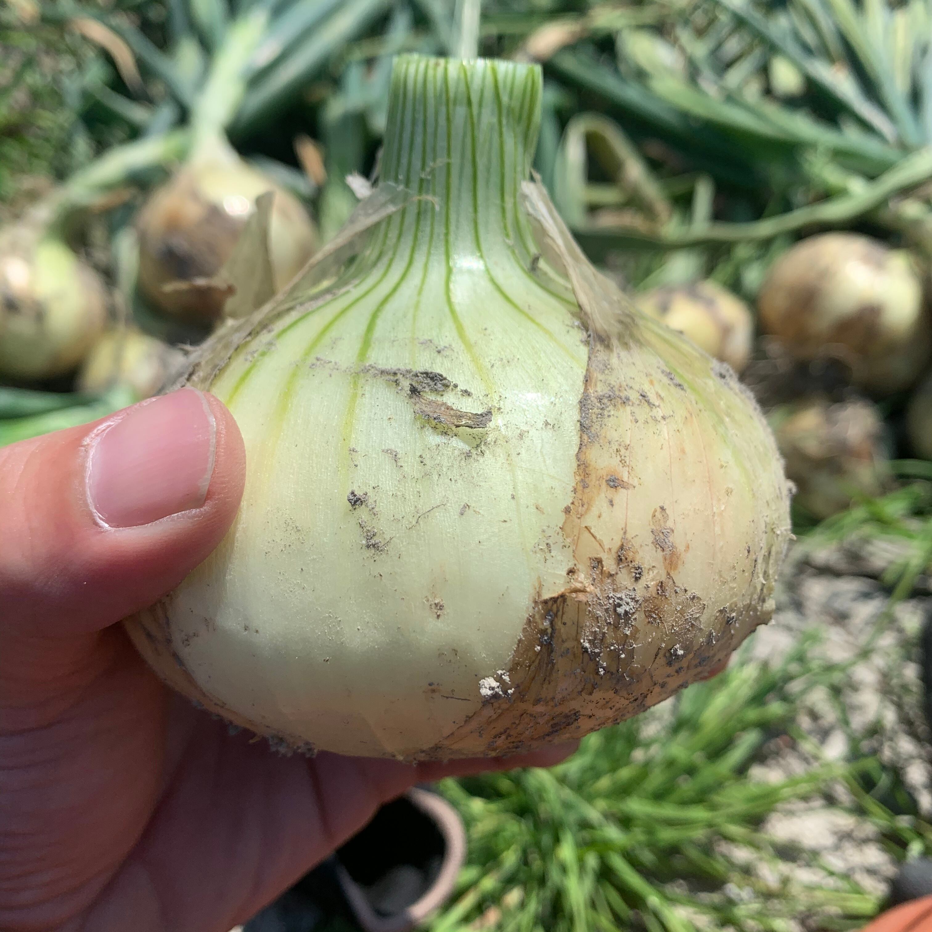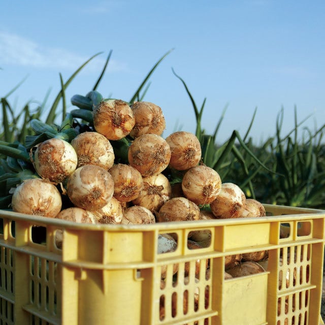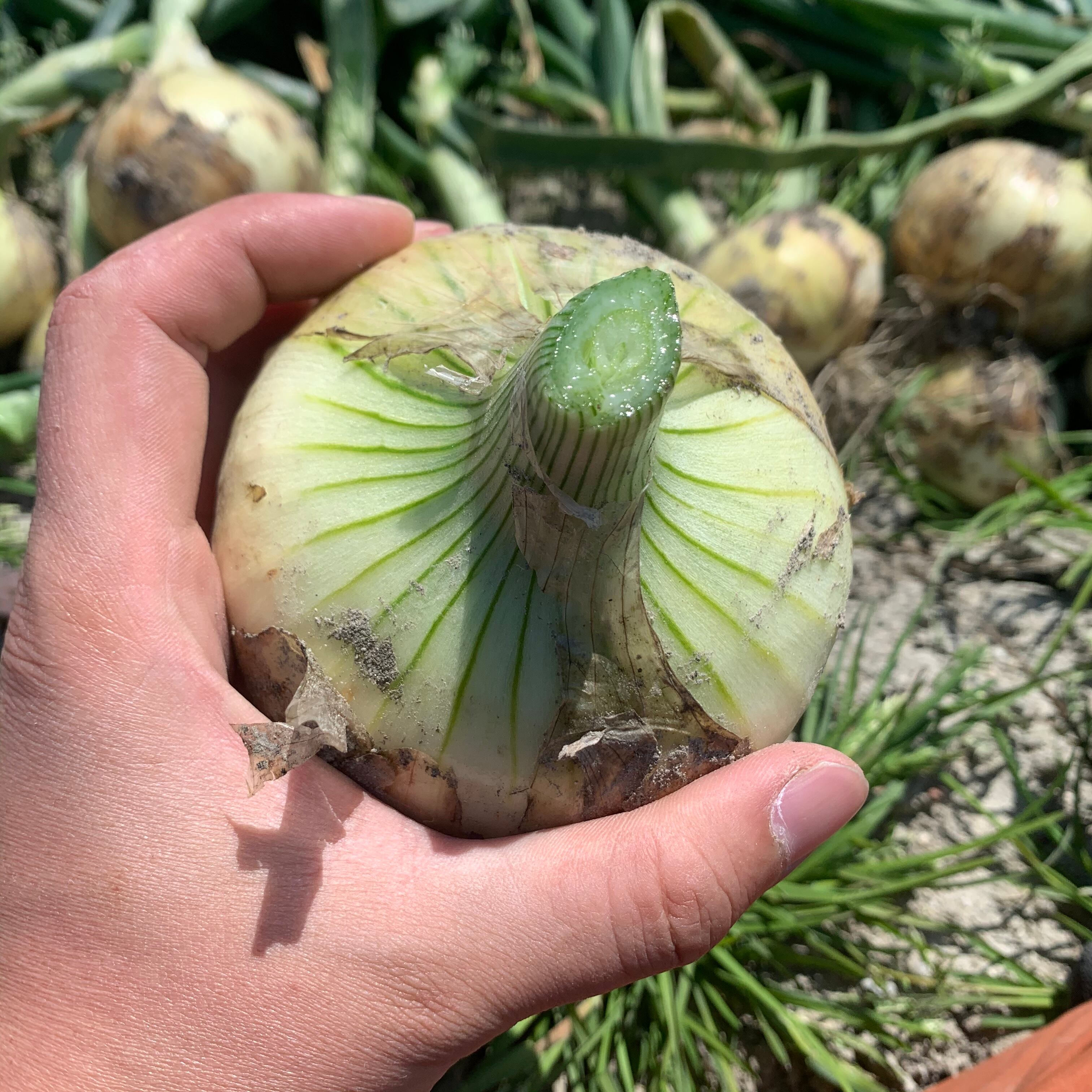 当農園で1番早く出荷する新玉葱です。辛味が最も少ない品種で甘く柔らかい食感が特徴です。